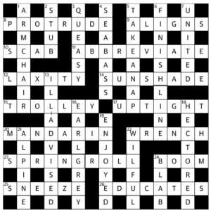 The only clue I didn’t like was SPRING ROLL. “Energy” for SPRING is rather loose, and “longs” for LL is just lazy.