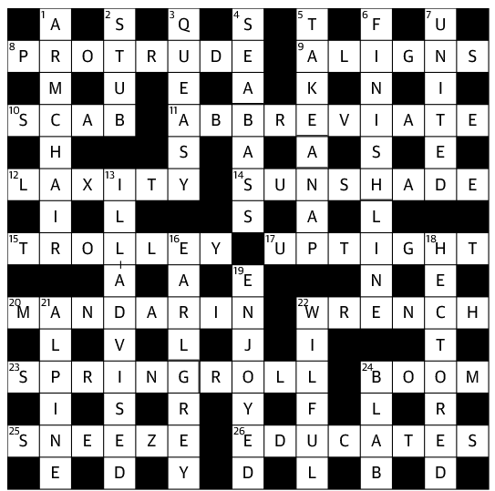 I think it shows how hard it is to pitch a Quiptic at just the right level, when one of the best setters perhaps errs for once on the demanding side. A very enjoyable puzzle, though. WRENCH was great. For a moment, I was worried it was going to be a specialist word for a young wren.