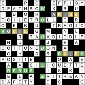 Quite a tricky crossword – I haven’t engaged with the Wordle phenomenon, so although I could see it in the grid, I didn’t bother to look for anything else
