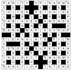 5. Mostly straightforward with no problems apart from INTEND which we decided had to be that but couldn’t parse, and CLEAN SLATE where our first guess was an only partly parsed ‘clean sheet’ till we got FLAT OUT. We did know the techno genre, though, so no trouble with ECHO.