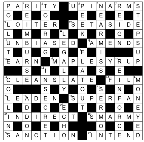 11. Enjoyable. Pleased to have cracked and understood LOITER. A bit too complex (‘rap music mainly..’) for my taste but I could get used to it.