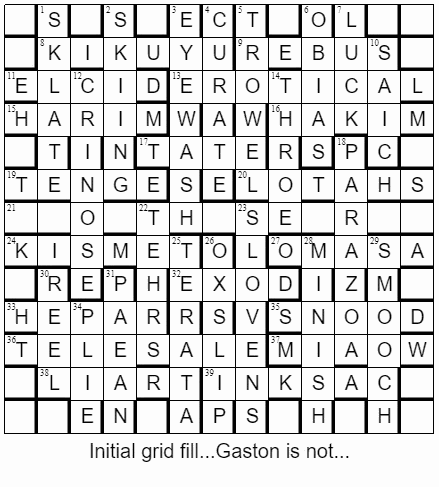 1. A fun puzzle. I had to get virtually every answer into the grid before I spotted where the perimeter message was heading, at which point everything fell into place. Thanks to Gaston for the entertainment and to mc-rapper for the review and nice animation.