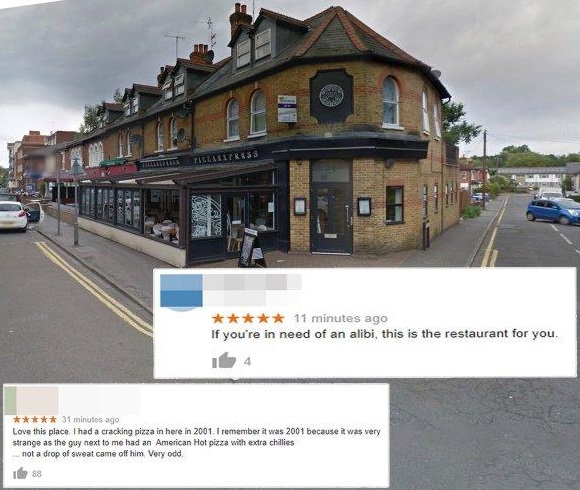 I can’t remember what inspired the reference to Woking’s Pizza Express as an alibi… oh… yes, I can