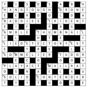 3. I thought I was missing something with LIE DETECTOR TEST. I don’t think it quite works, but I thought this was more like a Quiptic than some Anto puzzles.