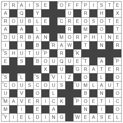 Hey, Geoff, you’re really letting we Aussies down by conceding defeat (insert smiley emoji here). I couldn’t really parse or explain every clue but I did manage to get it all correct: even 25A which I still don’t really understand. I also don’t understand why a “weasel” is a “shark” in 31A.