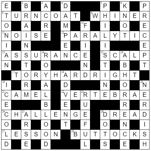 4. Thanks mc_rapper67 for a fitting blog to another entertaining puzzle from Cyclops. My second attempt. Even with the probable lead time, Cyclops is alway going to be contemporary unless there’s a change at the top. Oh wait, …