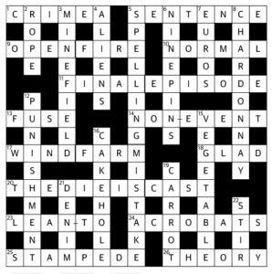2) 23 across – even though I actually solved this easily I still couldn’t understand – maybe because I’m not English – but SHED is a noun here right? Because LEAN TO doesn’t read to me as a noun.