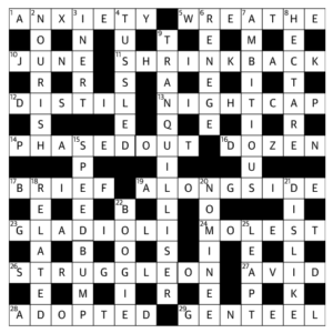 Very pleasant 20 minutes, just as a cryptic should be. Favourites were ANXIETY and MOLEST.