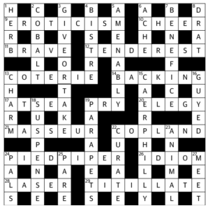 5. Never heard of BISTRE, nor LASER the plant; I parsed that as a laser might be in a factory/plant… Whatever the day, I assume Pasquale’s going to give me some new vocabulary; they were, at least, fairly clued.