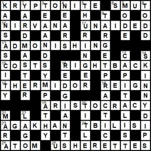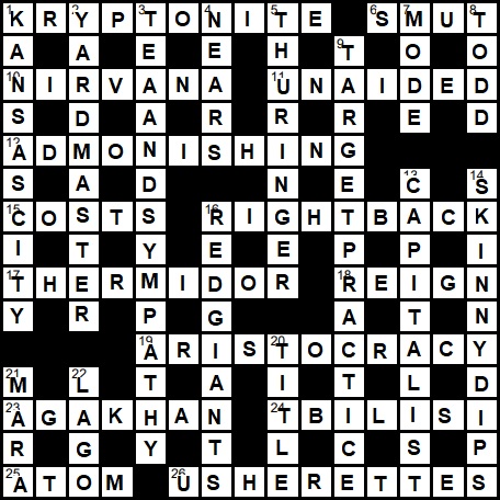 And just to complicate things, there was in rugby union one Neil BACK who was strong in the defensive department. Extra confusion for PostMark! KRYPTONITE, ADMONISHING, THERMIDOR, ARISTOCRACY, CAPITALIST, SKINNY DIPS and MAR A LAGO were my favourites today amongst considerable competition.
