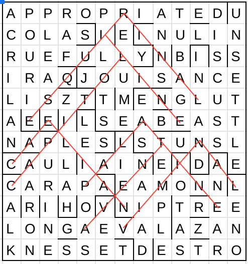 All that was left was to utilise eleven straight lines in the grid to represent the theme. Each hill could be found, sometimes overlapping, on diagonals throughout. Tracing them leads to seven peaks, thus representing each of the seven hills of Rome. Their positions in the grid don’t seem to match any online maps I’ve found, but doing so would have perhaps been a bit too much to ask of the setter.