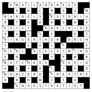 Really enjoyed this one – esp 27ac and 8dn. Loved the King Arthur discussion!