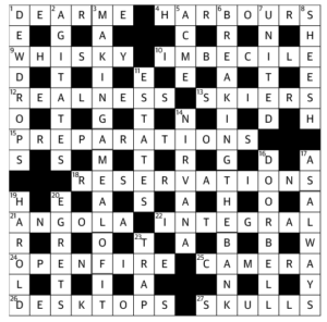 Other favourites were: EGRETS, SKULLS, PREPARATIONS, IMBECILE, HARBOURS (LOI)