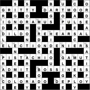 | 19 | PRANCE | Pence fled leaders of Capitol ‘excusable romp‘ (6) P[ence] RAN (fled) C[apitol] E[xcusable] |