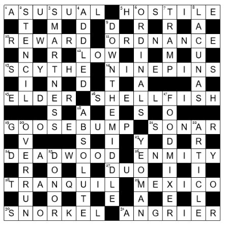 Well constructed puzzle with some good anagrams. I found it a bit less straightforward than today’s cryptic. There are some misdirections which are familiar to experienced solvers but might mystify beginners – but we all have to learn somewhere.