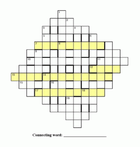 I had been having more success with the four letter World clues with ETUI, ARNA, HALL and HOLD than with the 9 letter words. Trying to place these 4 letter helped in determining the numbering order for the nine world clues. The preamble hinted that these words would also be entered as a diamond shape where it stated that ‘the shorter entry of each pair starts at one of four cells relative to the entry shape’
