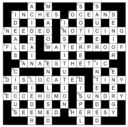 Almost as quick as the cryptic this morning. Liked ANAESTHETIC, ACID RAIN and ECCE HOMO.