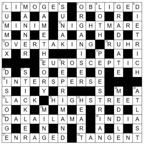 Highlights (of which there were many) include NIGHTMARE (but a dream of a clue) EUROSCEPTIC, DALAI LAMA and TANGENT.