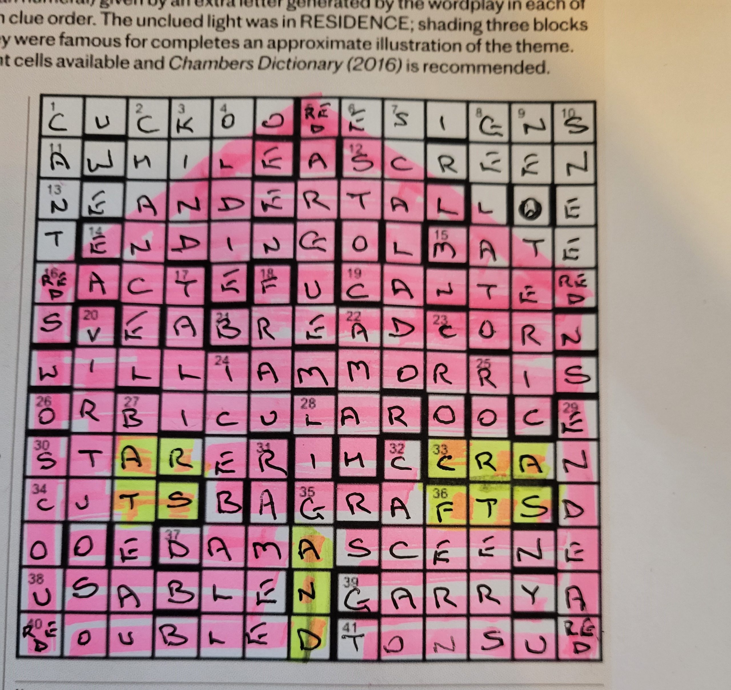 The multiple letters in cells I lucked upon quite early and my assumption proved to be a good one. They were all RED.