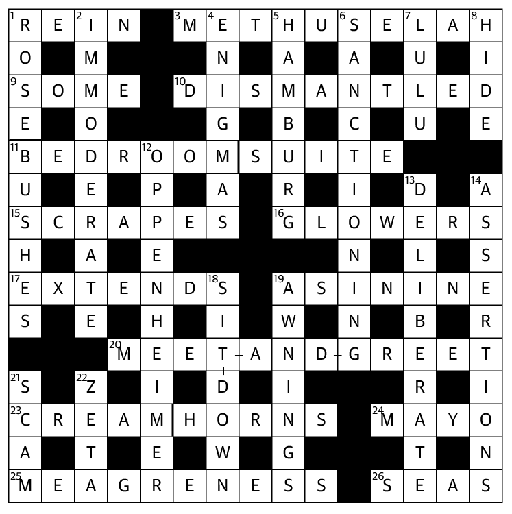 Can someone enlighten me on how suit = agree in MEAGRENESS? That’s the only one I couldn’t parse last week.