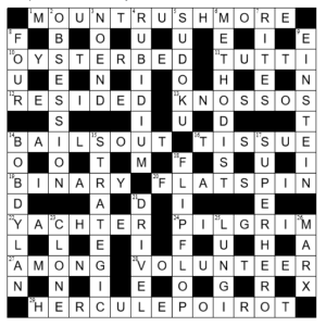 Thanks both. Just the right level of challenge for my ‘tired and emotional’ state. Plenty of points of learning for 2024 already including KNOSSOS, ‘shmo’ in MOUNT RUSHMORE and that meaning of FLAT SPIN which I only knew relating to aircraft. I first came across Noma in a Filbert puzzle in November so was able to parse AMONG though I still think the reference feels pretentious. I will probably need the remaining 365 days of the year to find the Nina. Best wishes all.