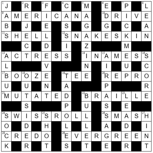 And as for SNAKE + SKIN vs S_KIN clothing NAKES, we will probably never know unless the Pirate p-p-p-pops in… It seems the ‘annotated solutions’ dried up in September last year – hopefully an item fairly high up on the new Editor’s to-do list will be to reinstate them… I don’t tend to think of snakeskin as a clothing material – shoes and handbags yes, but clothing no – except maybe the odd ageing rockstar in snakeskin trousers or jacket?…and obviously the skin originally ‘clothed’ the snake…