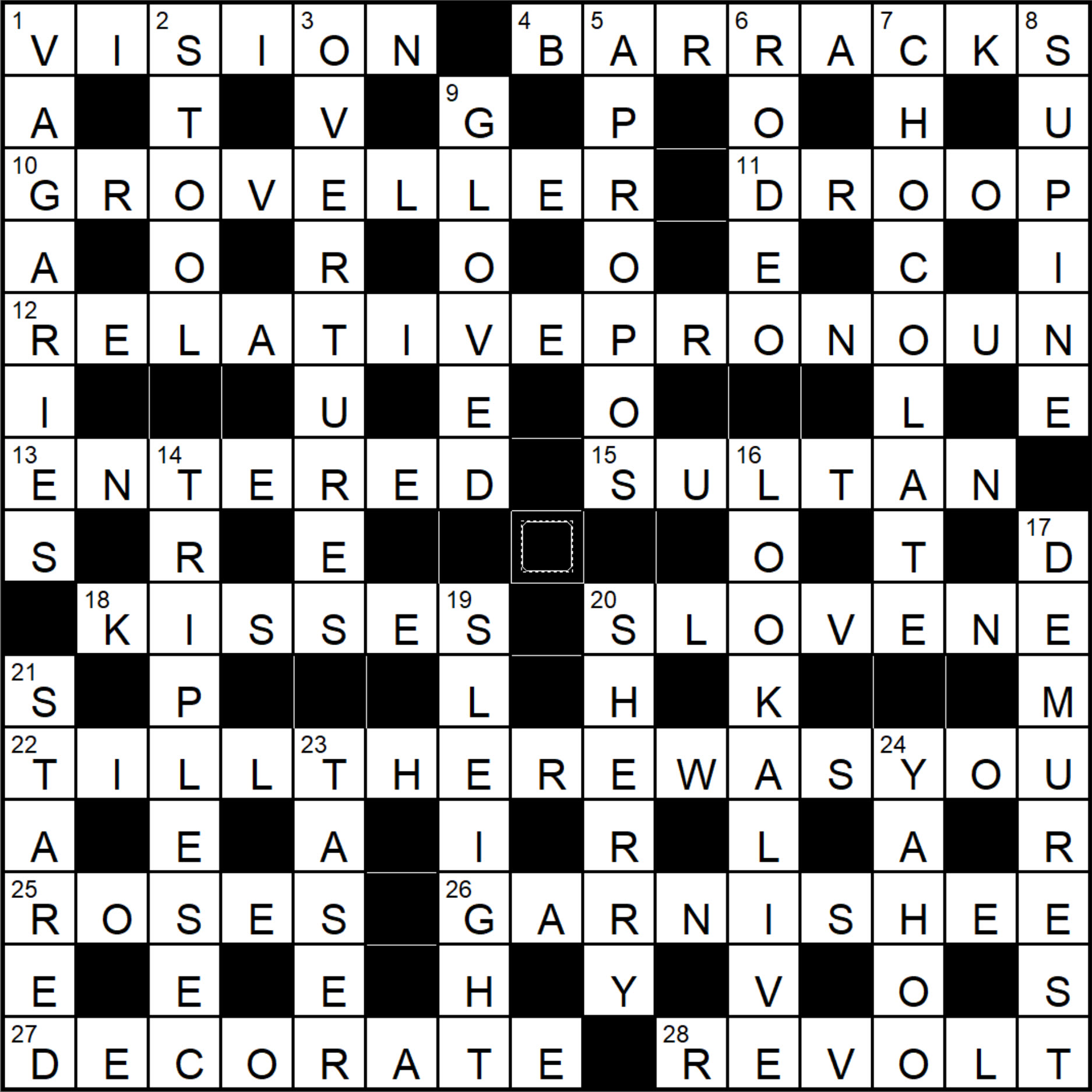 Enjoyed this a lot; thank you Atrica. Nice to see ‘love’ in a clue (1a) not meaning the letter ‘O’. Lots of great clues, but loved 11a and 12a particularly (DROOP, RELATIVE PRONOUN) and 1d ‘s use of Viagra was a hoot. Thanks also to DS for the blog.