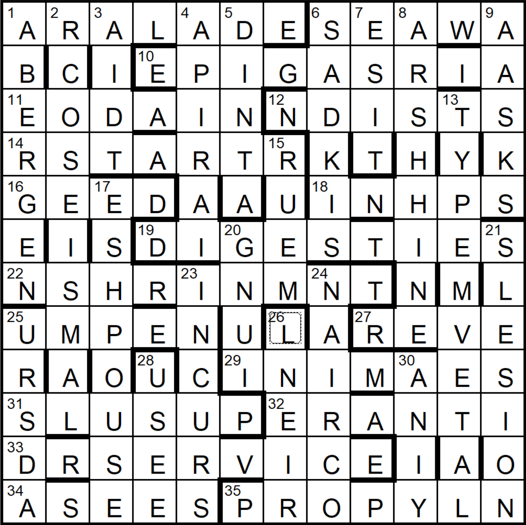 While the clues were slightly easier, some of the answers were still new to me. Examples of new words for me included EPIGASTRIA, INHOOPS, HUMPEN, SLUSH UP, PIRAI and ARSHINE.