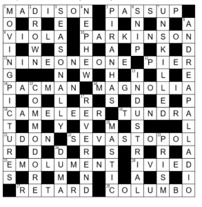 Tough. Pierre, if you had to cheat, I feel a little better. The architect was a nho. I liked a lot of the clues though – PARKINSON, NINE ONE ONE, EMOLUMENT (nice word), and PAC-MAN which I somehow got despite the TV series. Oh, and COLUMBO for the inimitable Peter Falk but also for UMBO which came up first on Google. Thanks for the excellent blog Pierre and thanks to Filbert.