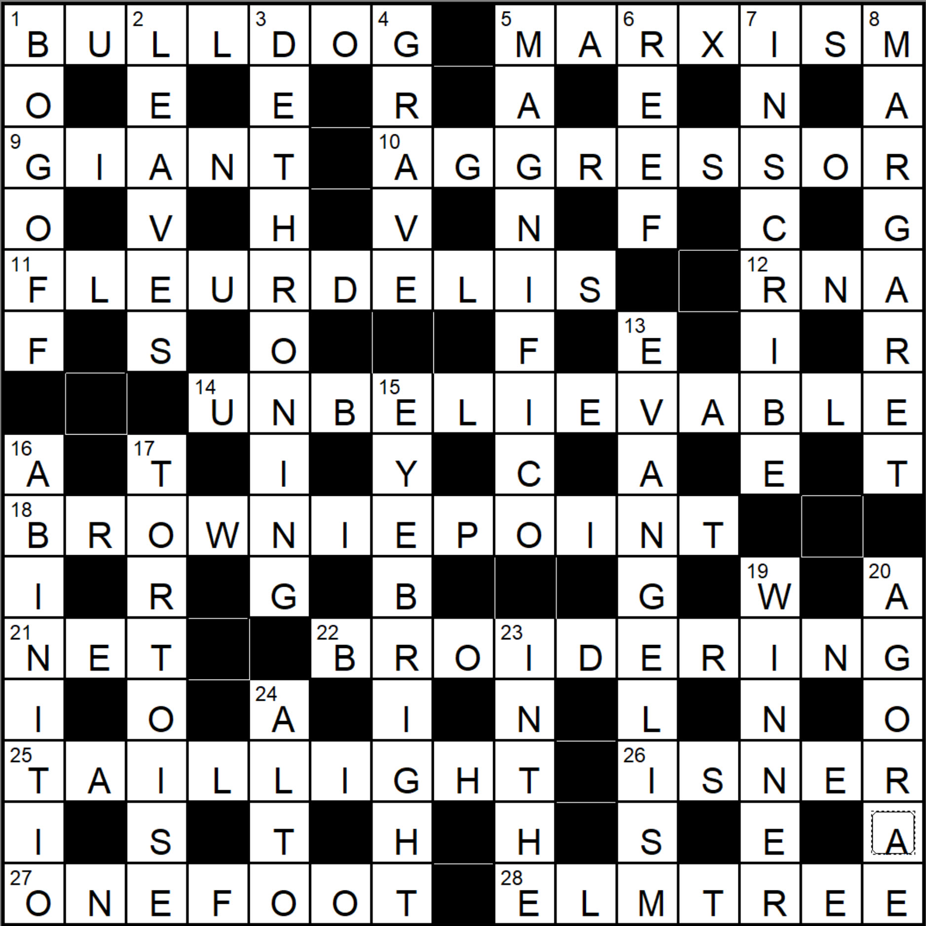 There are a few references in the clues and in the grid to the sitcom ONE FOOT IN THE GRAVE [27 across /23 down /4 down] that ran for 10 years between 1990 and 2000. The writer was David Renwick [born 1951] and the lead actor was Richard Wilson [born 1936], who played the curmudgeon Victor Meldrew. The opening titles featured a GIANT [9 across] TORTOISE [17 down]. Meldrew’s wife was MARGARET [8 down]. Victor’s famous phrase ‘I don’t believe it’ is probably referenced in UNBELIEVABLE [14 across].