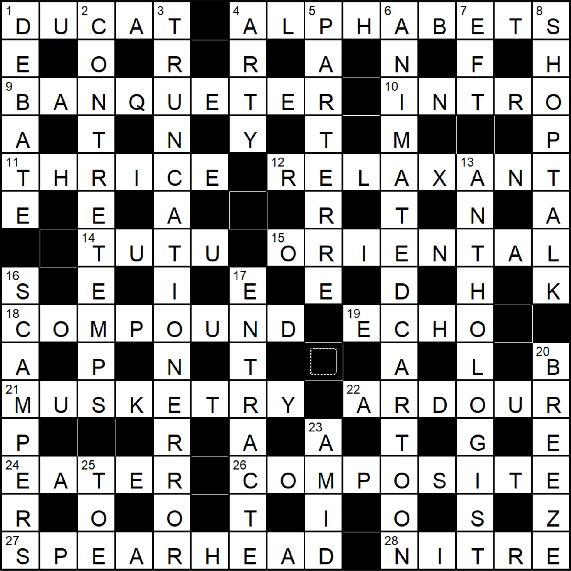 I think this is just a straightforward crossword without a theme, but I’m never sure with Phi’s talent for hiding themes. The only glimmer of a pattern I can see is that we have clues involving FEASTER, EASTER and ASTER, but I don’t see a continuation to STER, TER, ER and R. Writing the blog, I see that ESTER is in the clues as well. Given that today is Good Friday there may be something in this idea.