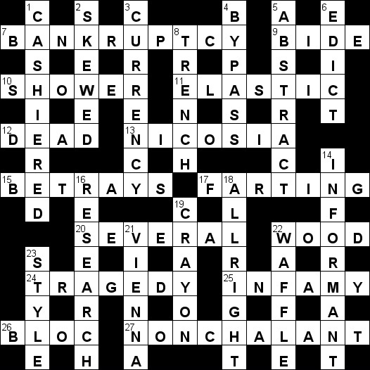 27 | NONCHALANT | Offhand Macron’s negative election loser breaks into song (10) NON (No in French, Macron’s negative), AL (Gore, election loser) inside CHANT (song) |