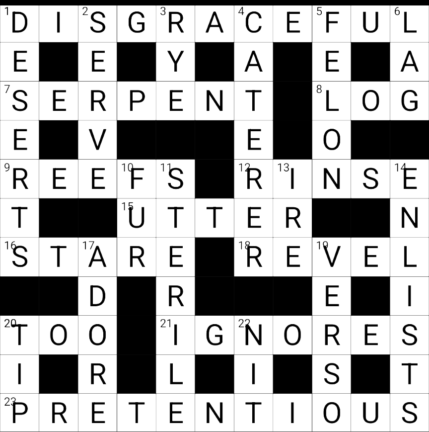 Liked: the two long anagrams DISGRACEFUL and PRETENTIOUS.
