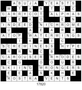 I was looking for 15 different corvids, but there’s only 9, with 6 of them across two clues, like (2d) BTREE PIEROGIES (16d)