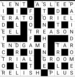 DNF. I knew it was some kind of tennis fault, but I’ve never heard of FOOT FAULTS specifically, so I gave up. The crossers weren’t enough to help, but perhaps with some thought I could have given it a guess.