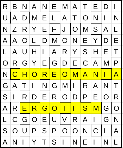 ERGOTISM apparently used to be a favourite suspected cause of the above madness, ERGOT being somewhat akin to LSD in ways I profess to having not spent too long studying, but is now a little out of favour. Nevertheless it’s there in the grid, and nobody seems to have a better suggestion.