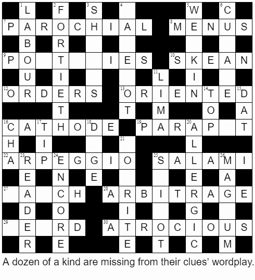 All the rest was great, once I’d sussed the mammals theme. Liked ARPEGGIO, ATROCIOUS, BEARD, PAROCHIAL, MENUS, ORIENTED – and others.