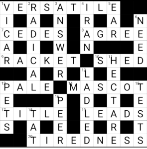 Muffin, passim: I had the same quibble about RACKET/RACQUET, except that I was under the impression that the former was the American spelling, so I thought it was just the Atlantic Ocean intervening again. Interesting to know that that’s not the case.