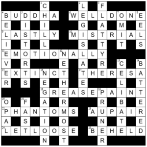 Most complex wordplay for me was GREASEPAINT, with the older form of “isn’t”, and the order of the parts (put on).
