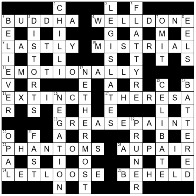 Also had no idea about greasepaint for stage make-up, took all the crossers and then googling types of theatrical make-up to get there. Embarrassing, since I was listening to Olivia Newton-John last night!