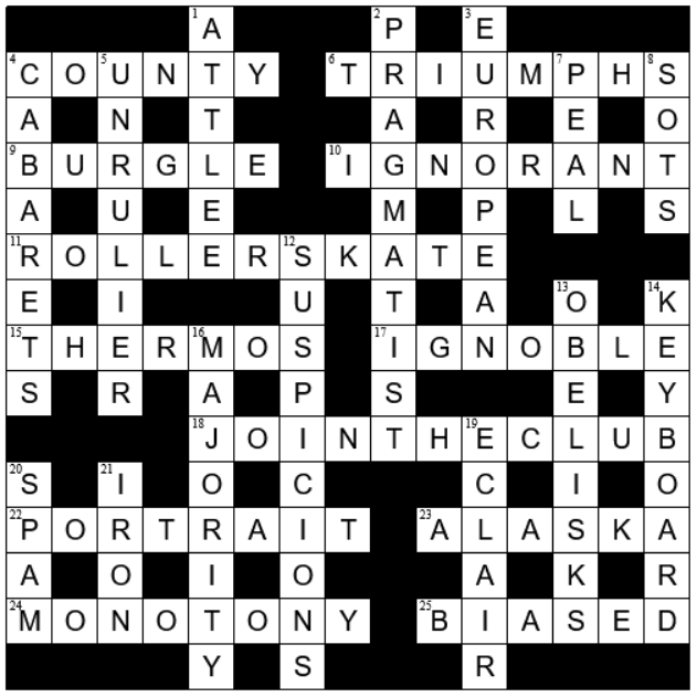 Not as easy as Quiptics often are – I took some time to complete the NE. Good puzzle, though.