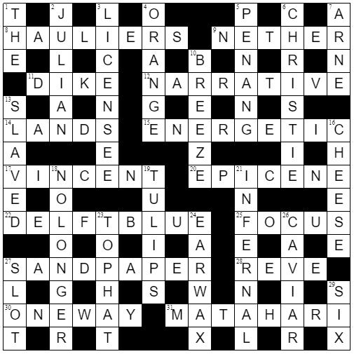 Definitions are underlined in the clues.