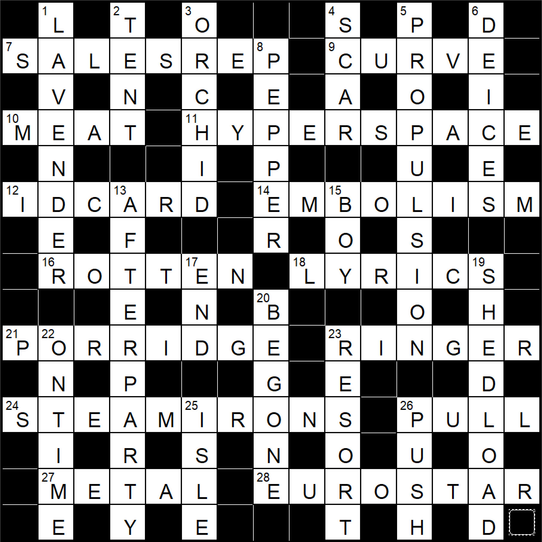 For the theme, I wondered about the juxtaposition of ROTTEN and LYRICS in the middle row and looked to see if Johnny ROTTEN had written any songs that might have featured in the grid, but that didn’t get me anywhere.