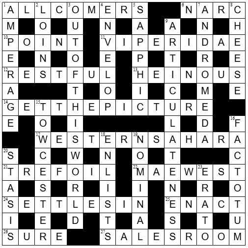 | 14A | GET THE PICTURE | See clearly and shoot (3,3,7)