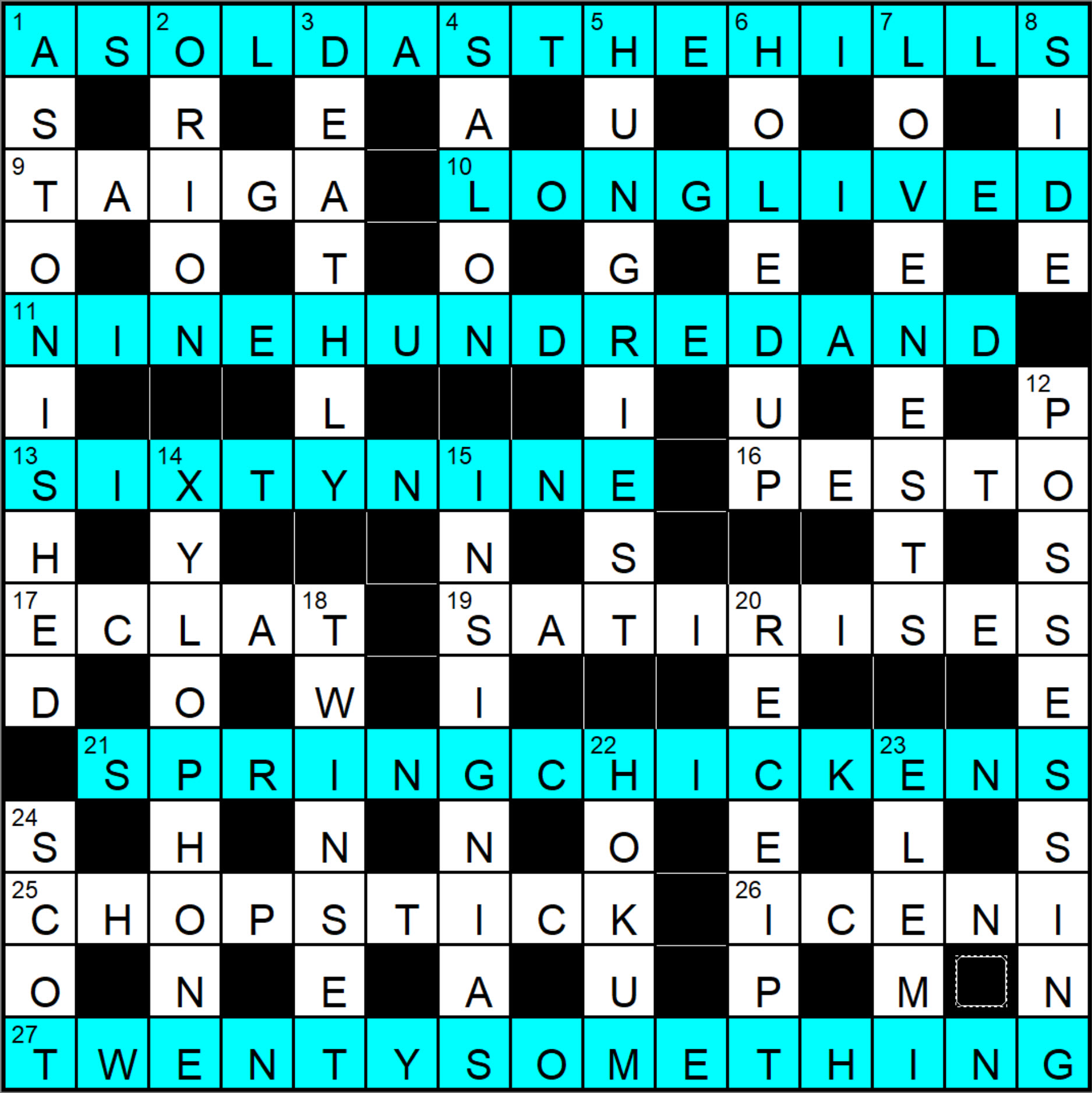 All in all, an enjoyable crossword and I look forward to more from Methuselah in the weeks and months ahead.