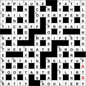 18 | DROOL | Lord Owen’s initial drunken drivel (5) (LORD + O[wen])* AInd: drunken. |