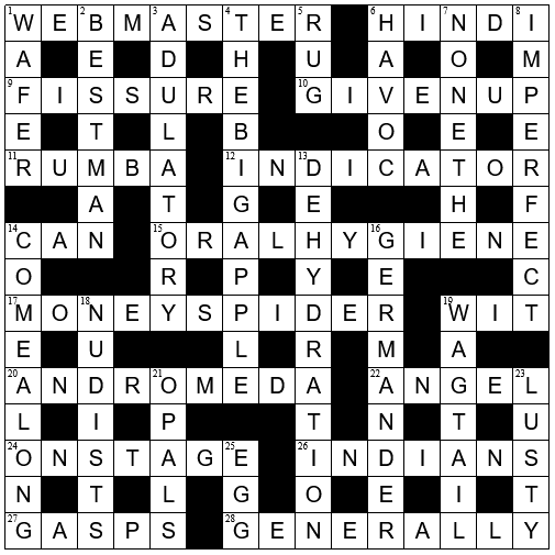 I ticked THE BIG APPLE (with the usual exception that it is not “a city abroad” for many solvers), WIT made me laugh, DEHYDRATION was brilliant – great anagram and surface, nice anagram for ANDROMEDA (but “all-star group” was a bit corny), and I thought GASPS & COME ALONG were cleverly done.