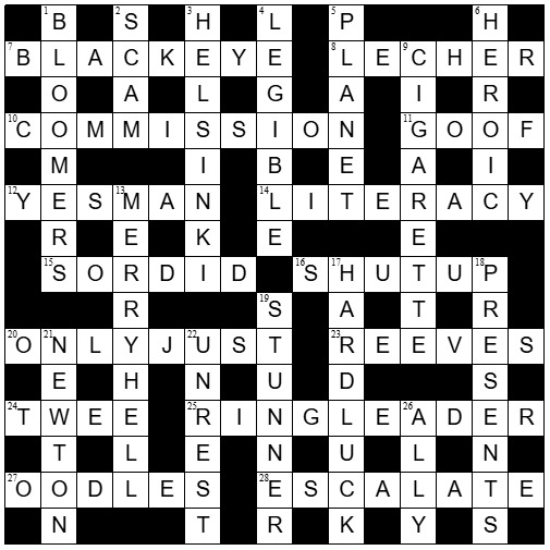12A | YES MAN | Old band crew’s lackey (3-3)