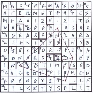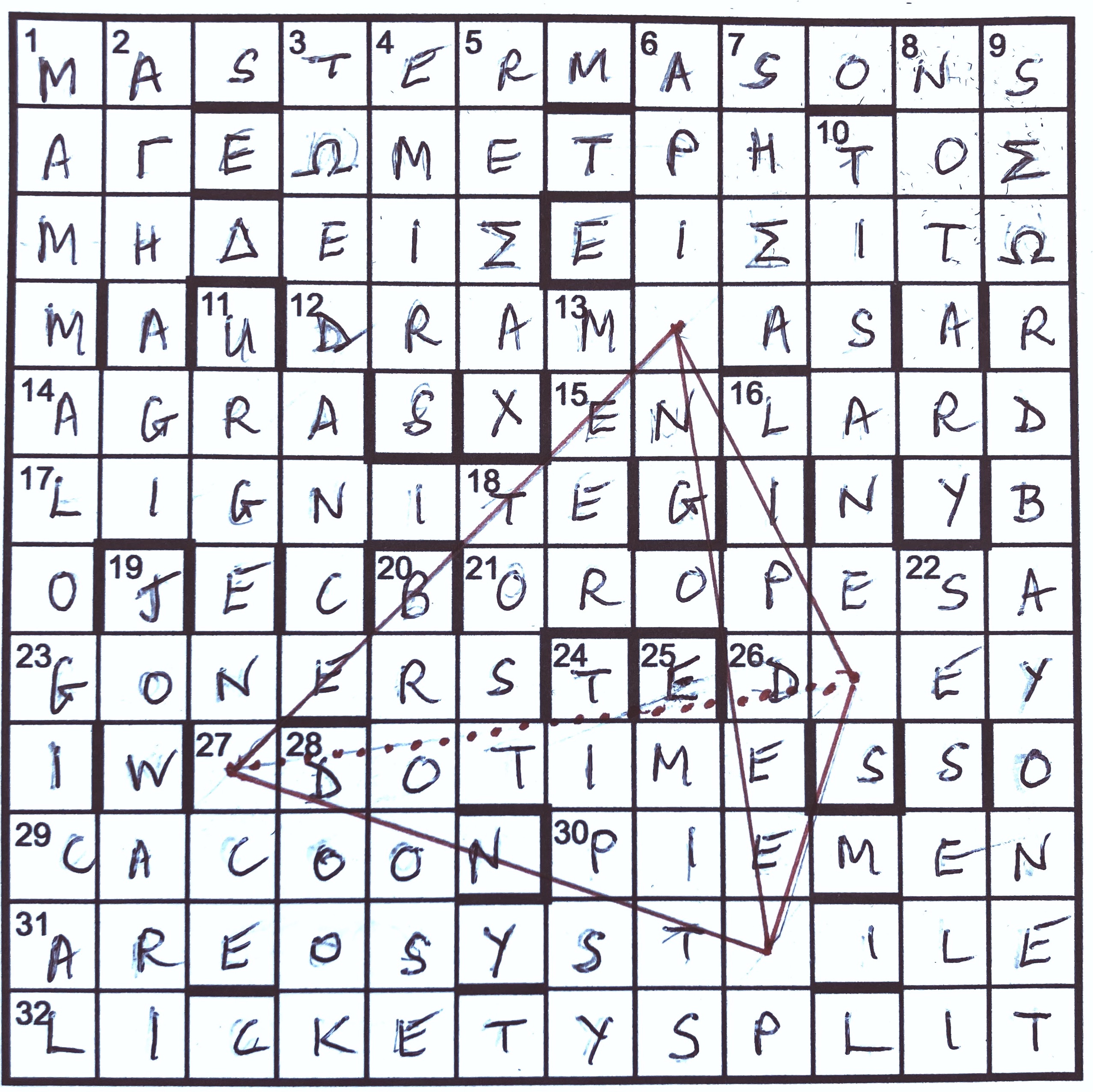 I needed to learn that a tetrahedron was one of Plato’s solids and, with a second smile, saw that my grid had spelled the adjective DOTTED for that fifth line.