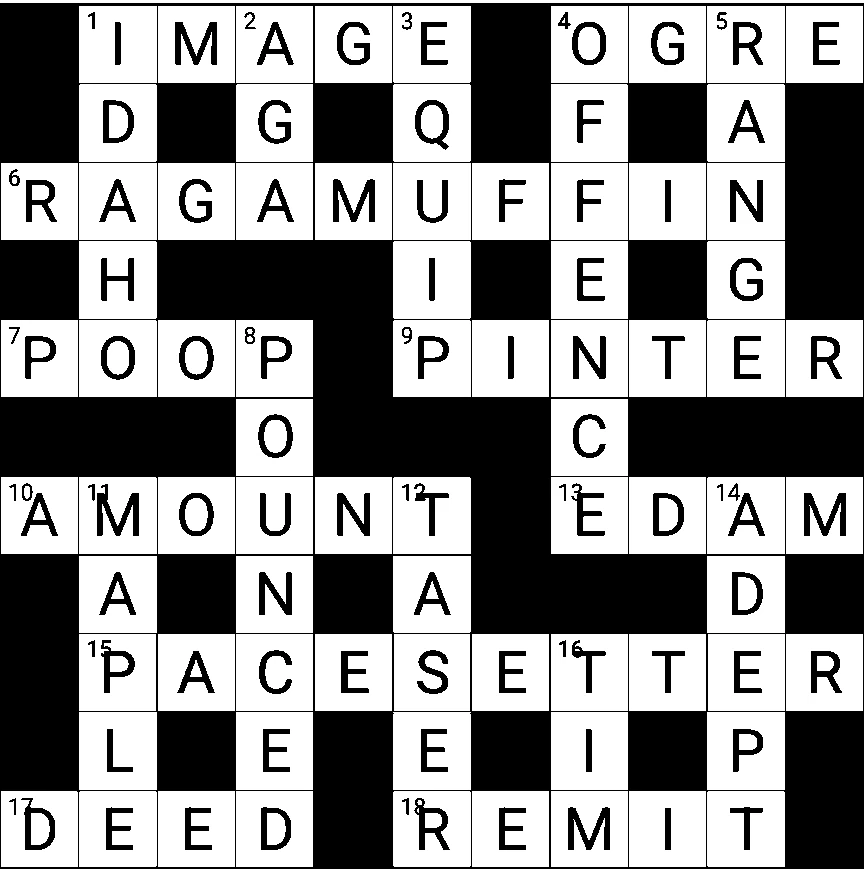 It was good to finish this – it needed a second pass as my first pass was empty! OGRE and RANGE were the first in. AGA (The Aga Khan came to mind) seemed ok as soon as I’d got IMAGE (knowing the A was repeated, palindromes are helpful like that!)